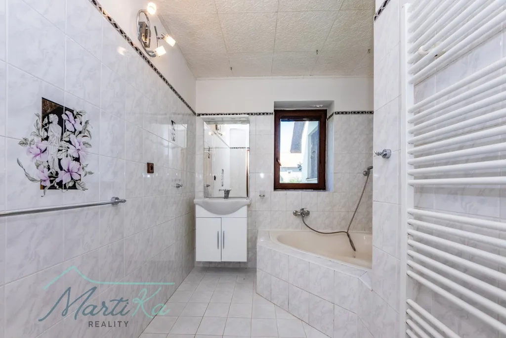 - Garáž o ploše 58 m² v suterénu – pohodlně zaparkujete až 3 auta. Další stání přímo před ní i další klidně venku.