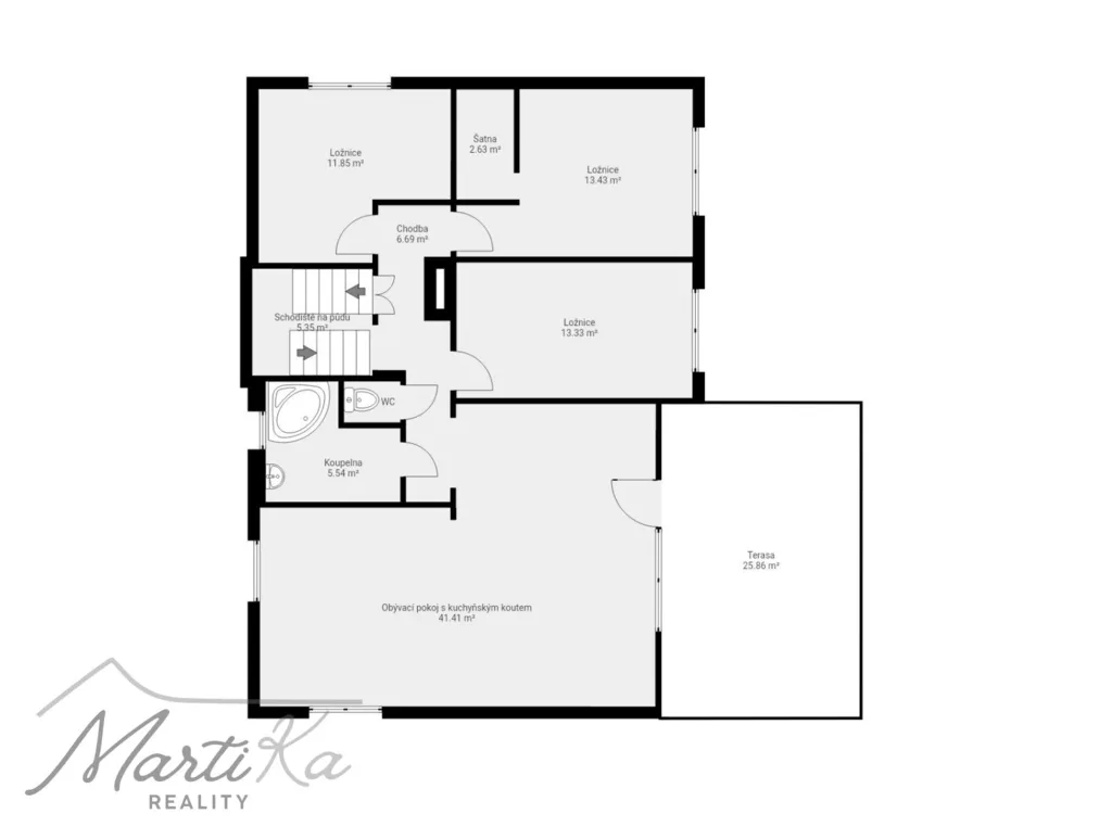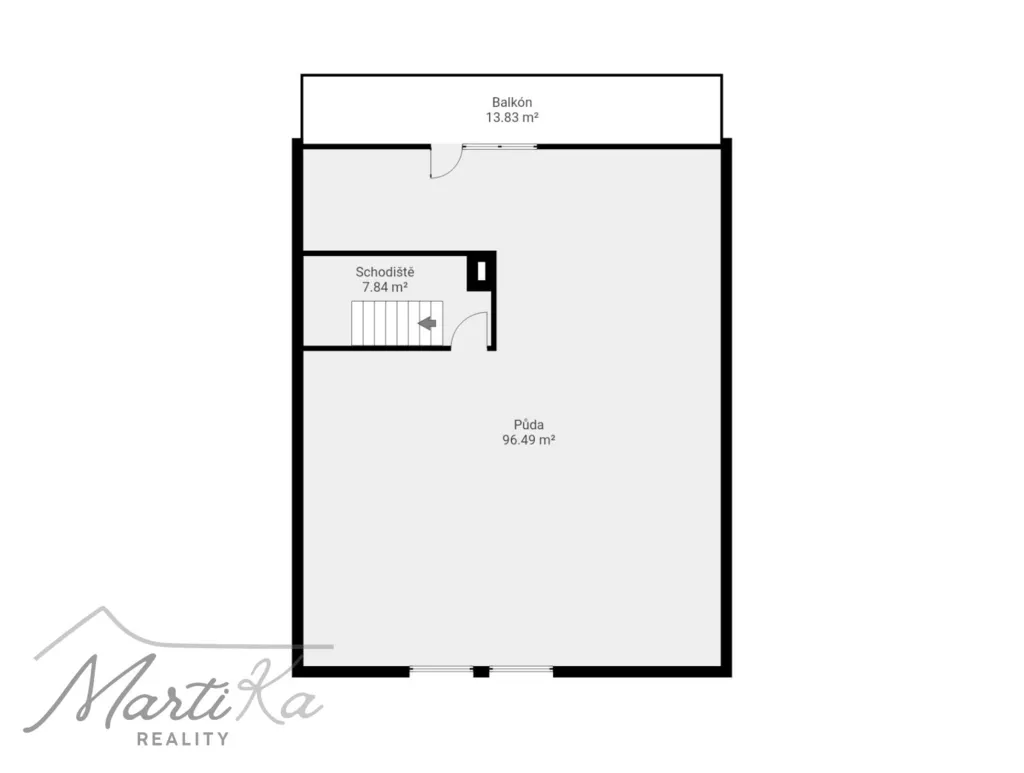 - Půdní prostor s balkonem, který láká k realizaci dalších obytných místností, ateliéru či pracovny.