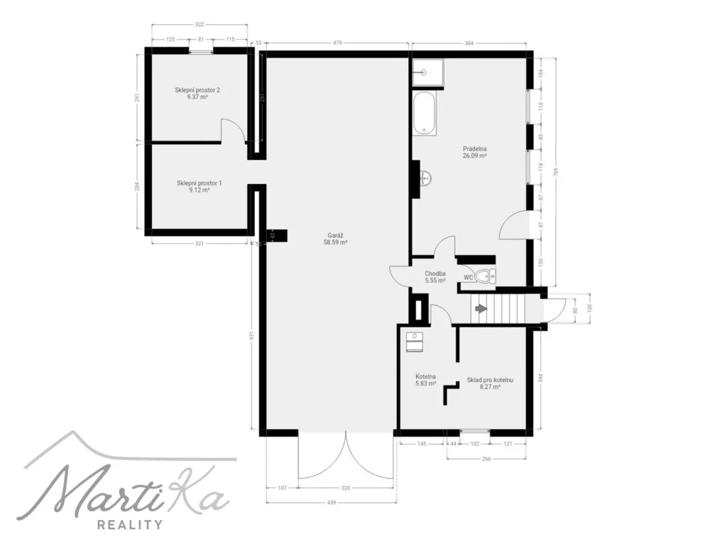 - Suterén s velkým potenciálem – dva sklepy, prádelna, kotelna, skvělý prostor pro podnikání nebo dílnu.