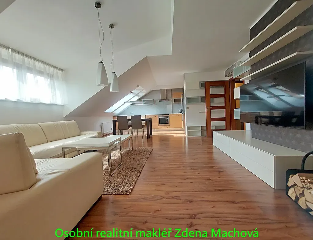 Jako osobní realitní makléř nabízím dlouhodobý pronájem vkusně zařízeného patrového půdního bytu 3+kk s prostornou terasou, proskleným krbem, klimatizací a možností garážového stání.