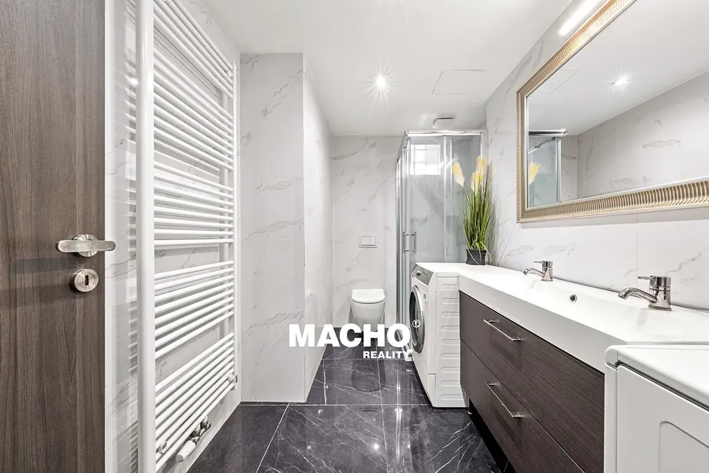 Byt prošel kompletní rekonstrukcí před pěti lety. Okna jsou plastová, trojitá se žaluziemi. Vytápění je řešeno vlastním elektrokotlem, ohřev vody bojlerem.