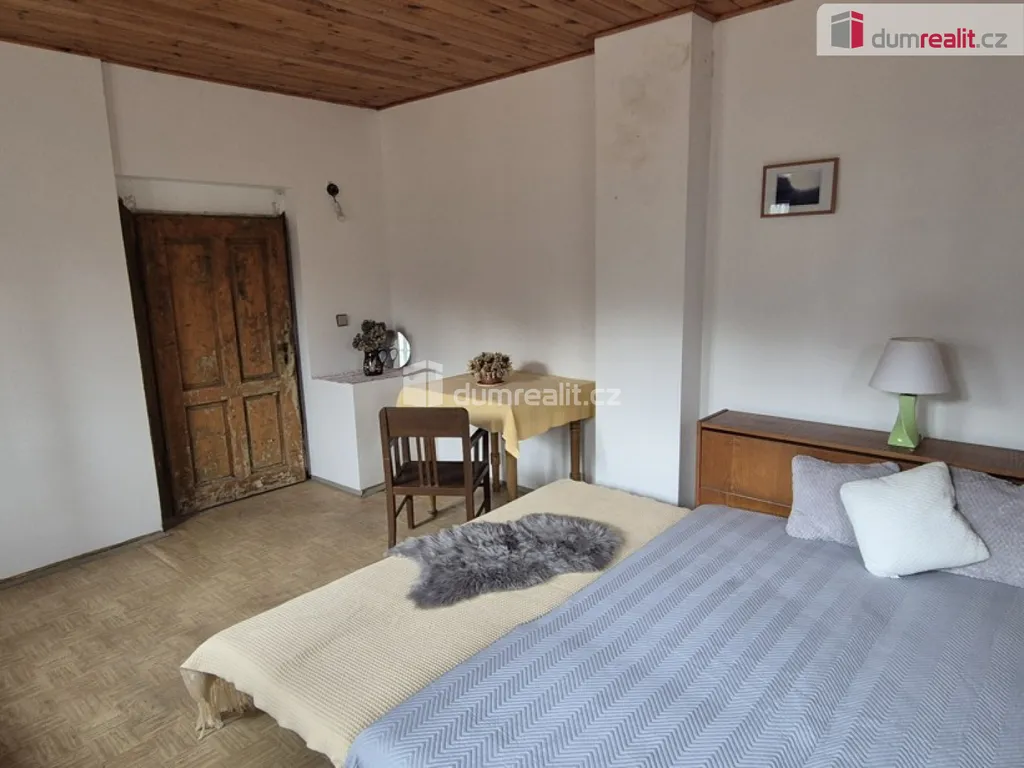 Přízemí domu o zastavěné ploše 174 m² disponuje prostornou místností s původním určením pro hostinec, doplněnou o dvě menší skladové místnosti. Dále zde naleznete kuchyň, dva obytné pokoje, koupelnu a dvě samostatné toalety. Samostatným vchodem v levé části přízemí se dostanete do útulného podkrovního bytu 1+1 s vlastní koupelnou a WC. Ideální pro samostatné bydlení člena rodiny nebo na pronájem. Část podkroví zůstává neupravena, nyní slouží jako úložný prostor. Do budoucna má potenciál pro rozšíření obytné části. Celý dům je pečlivě odizolován, vytápění je řešeno kombinací plynových topidel a elektrického topení, teplou vodu pak zajišťují spolehlivé elektrické průtokové ohřívače.