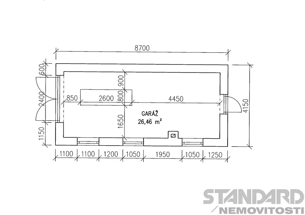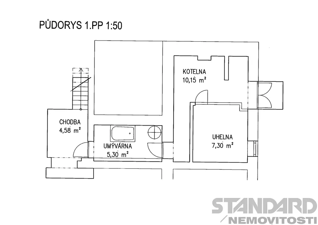 • garáž s montážní jámou, s možností vytápění z kotelny domu