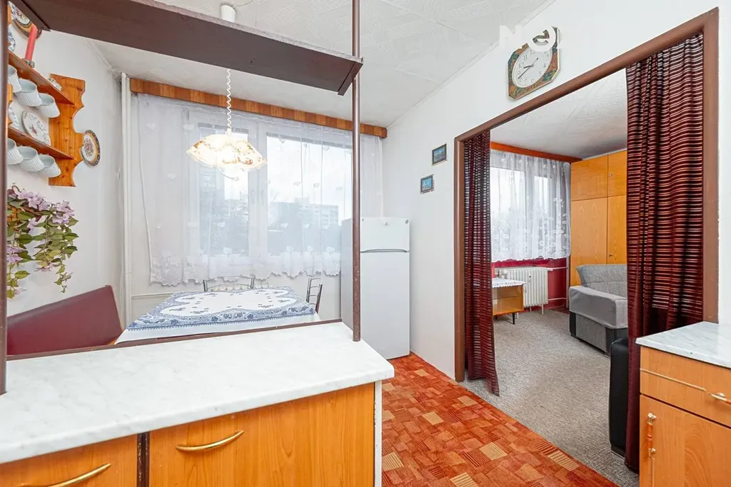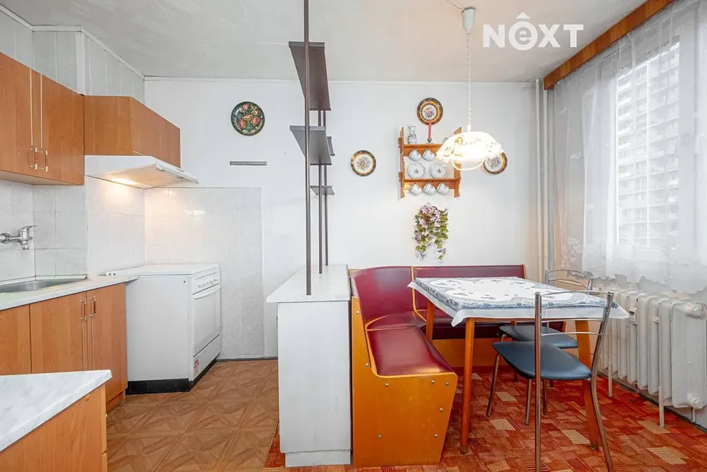 Dispozice bytu: vstupní chodba, koupelna, samostatné WC, obývací pokoj, kuchyně, ložnice se vstupem na lodžii 6,5m², pokoj. Byt má plastová okna směrovaná na východ a západ. K bytu náleží dva sklepy 1m² a 2m². Možnost parkování u domu.