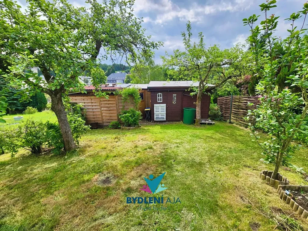 Pozemek je osázen množstvím ovocných stromů a poskytuje dostatek prostoru pro odpočinek, zahradničení nebo rekreační využití.