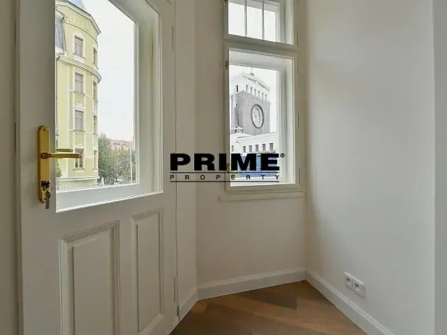 Nedávno kompletně zrekonstruovaný, 2 ložnicový (+ pracovna / malá ložnice), klimatizovaný, nezařízený (nebo po dohodě zařízený za vyšší nájem) byt s 1 koupelnou k pronájmu, 4+kk, 118m2, s malým balkonem (2m2) a garážovým stáním, situovaný v 1. patře kompletně zrekonstruovaného secesního domu s výtahem.