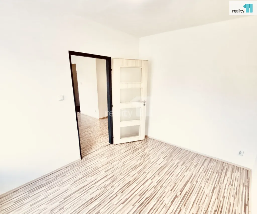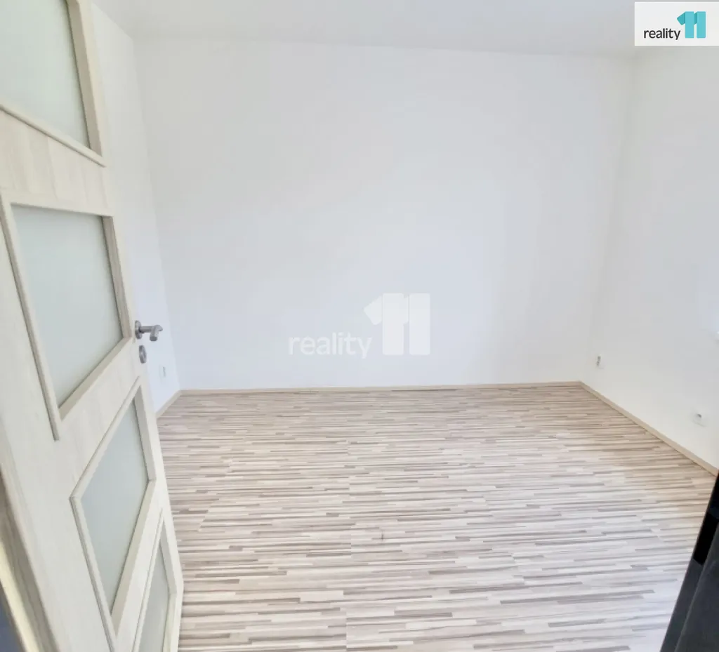 Na zemi je laminátová podlaha, dlažba.