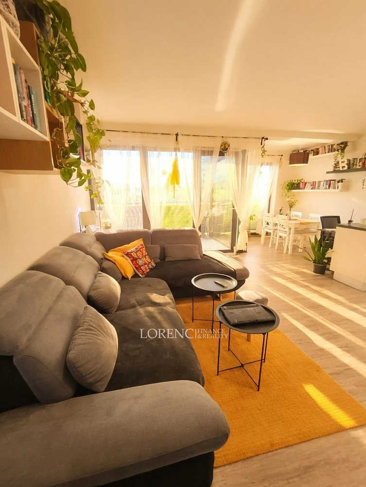 Byt o celkové ploše 95,73 m² nabízí promyšlené uspořádání – dominantou je světlý obývací pokoj s kuchyňským koutem a přímým vstupem na terasu o velikosti 22,13 m². Dále zde najdete dvě samostatné ložnice, koupelnu s vanou, oddělené WC a praktické zázemí v podobě komory a šaten. Celkem tedy byt 95,73m² plus terasa 22,13 m².