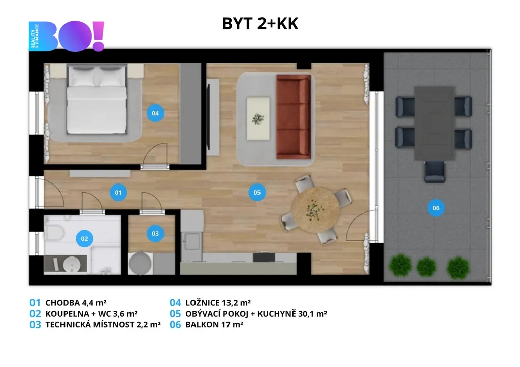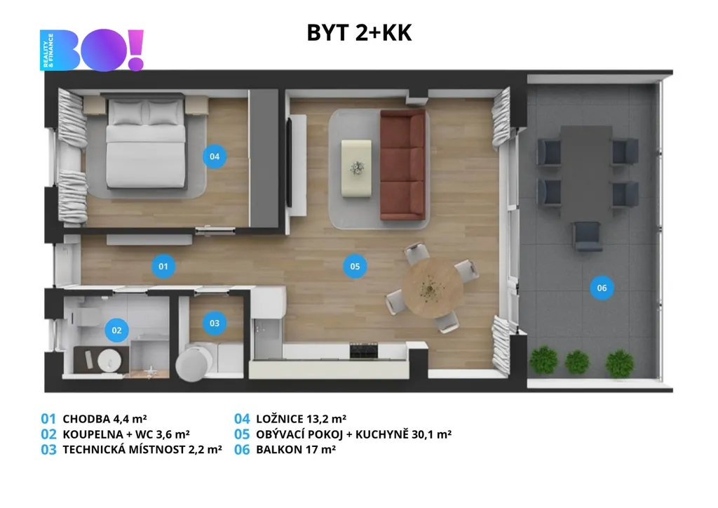 BO! Reality vám s velkou radostí představuje k prodeji nádherný a zcela nový byt 2+kk v srdci Horních Soběšovic, jen pár kroků od přehrady.