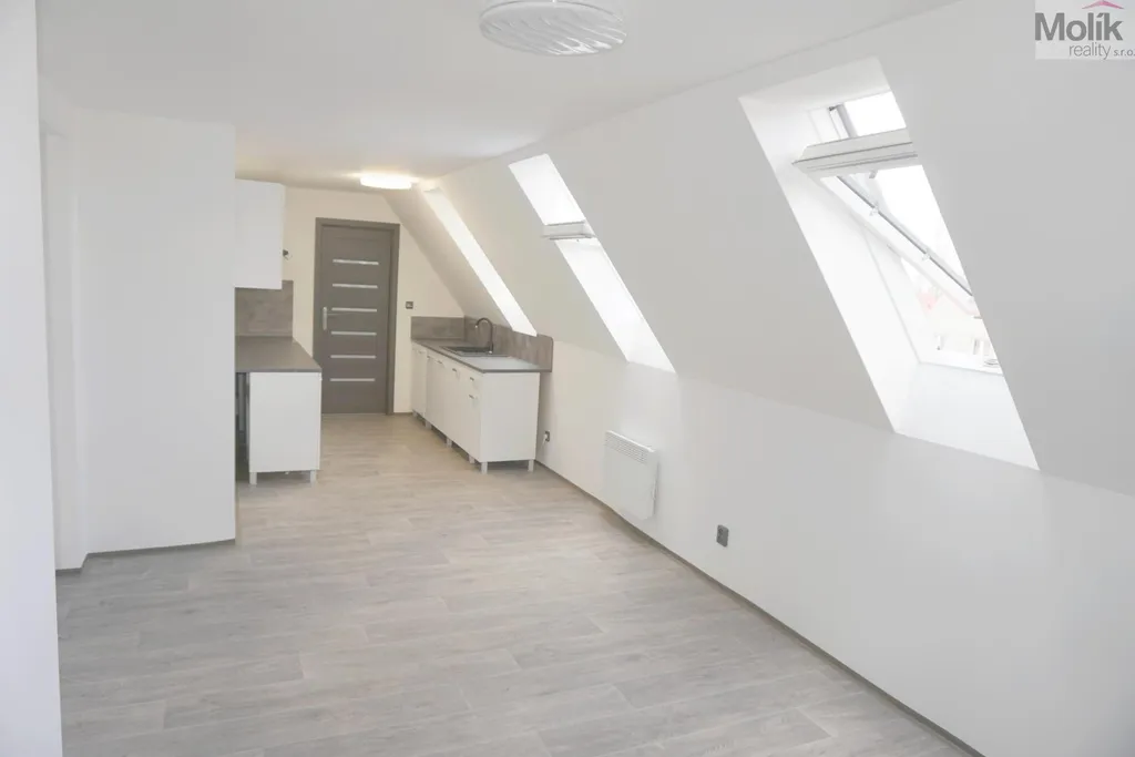 Jedná se o podkrovní byt, který prošel zdařilou, kompletní rekonstrukcí - nová kuchyňská linka včetně horkovzdušné trouby, varné desky, myčky.., nová koupelna se sprchovým koutem, keramickými obklady a dlažbou, nové podlahové krytiny, vnitřní dveře, střešní okna, izolace celého podkroví, nová elektroinstalace atd. ...........