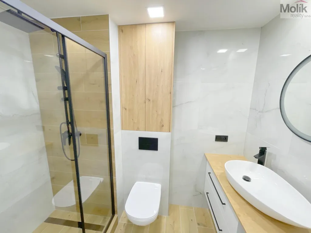 Jedná se o byt, který prošel zdařilou, kompletní rekonstrukcí - nová kuchyňská linka včetně indukční varné desky, horkovzdušné trouby, myčky nádobí atd. .., dále nová koupelna s vyzděným sprchovým koutem, keramickými obklady a dlažbou, nové podlahové krytiny, vnitřní dveře, nová elektroinstalace, u vstupních digitální panel s kamerou atd. ...........