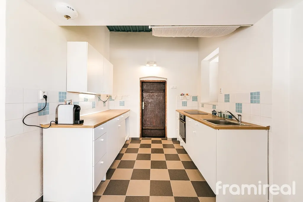 V největším pokoji se nachází dochovaná freska Jiřího z Poděbrad – historický detail, který z domu dělá skutečný unikát.