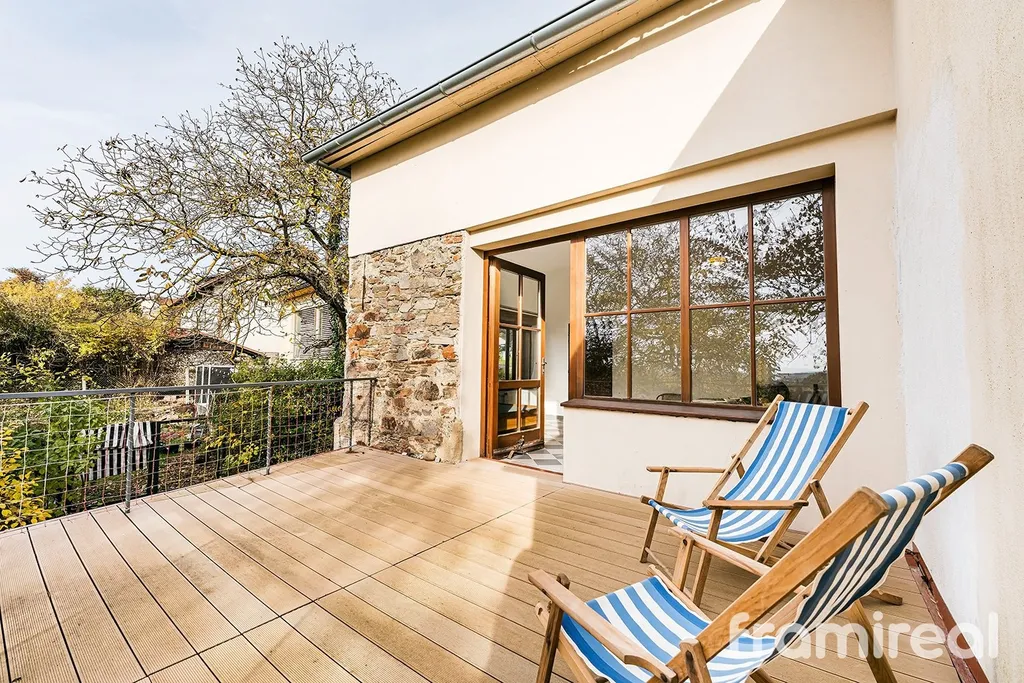 Velká terasa s výhledem do zahrady a zeleně nabízí ideální prostor pro odpočinek i posezení s přáteli.