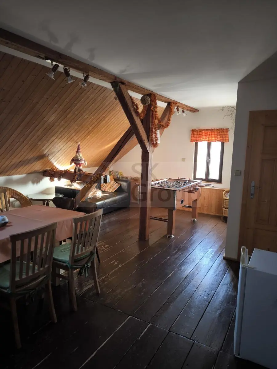 Nabízíme k prodeji dům s dlouholetou historií a příjemnou atmosférou, který v současné době slouží jako zavedený penzion se stálou klientelou. Zároveň se však jedná o plnohodnotný rodinný dům, jehož dispozice umožňují pohodlné bydlení i další využití podle představ nového majitele. Dům se nachází na velmi hezkém místě v Horní Blatné, jen pár minut chůze od centra obce, přesto v klidné části na okraji zástavby. Z domu i zahrady se otevírá krásný výhled na louky a lesy, který dotváří pocit soukromí a klidu.