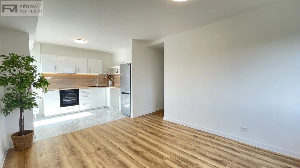 Byt je po kompletní rekonstrukci a září novotou. Obývací pokoj propojený s kuchyní nabízí velmi vzdušný a příjemný prostor, celodenně prosvětlený, ale nepřehřívaný. V kuchyni je indukční varná deska a elektrická pečící trouba vše kvalitní značka GORENJE, lednice Samsung, příprava na pračku.