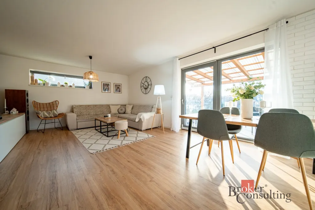 Tato nemovitost představuje skvělou kombinaci moderního bydlení, klidu venkova a dostupnosti města.