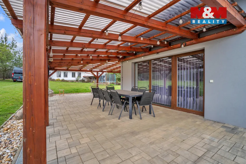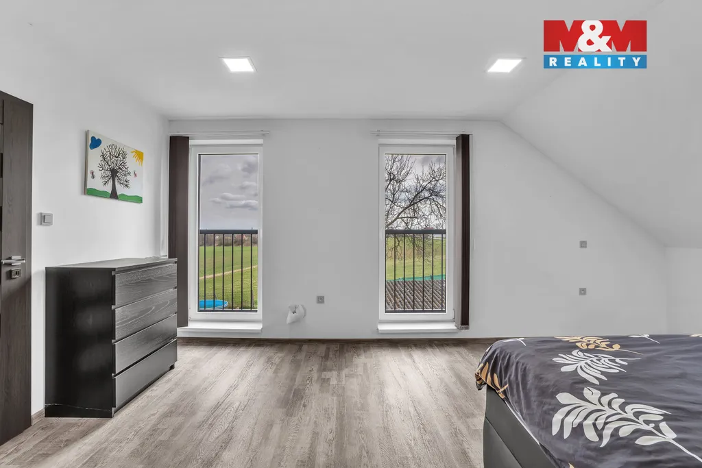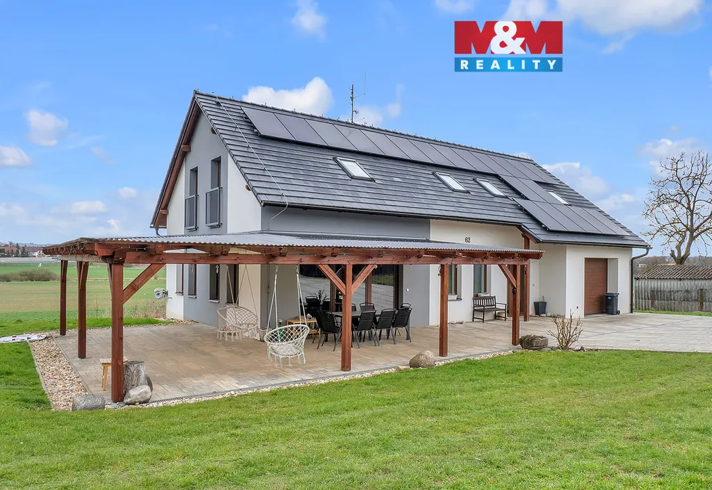 Prodej moderní novostavby rodinného domu 6+kk (užitná plocha 225 m²) v klidné části obce Čejkovice u Jičína (katastrální území Podhradí u Jičína). Dvoupodlažní samostatný cihlový dům na pozemku o výměře 1 194 m². Přízemí: zádveří, chodba, prádelna, koupelna 7 m², samostatné WC, pokoj pro hosty 12 m², obývací pokoj s kuchyňským koutem 38 m², špíz, garáž 25 m². V patře 4 ložnice, šatna 9 m² a koupelna s WC 12 m². Topení tepelným čerpadlem a fotovoltaika s velmi nízkými náklady na energie. Součástí prodeje je terasa 19 m². Výborné spojení a klidné prostředí na okraji obce nedaleko Jičína.