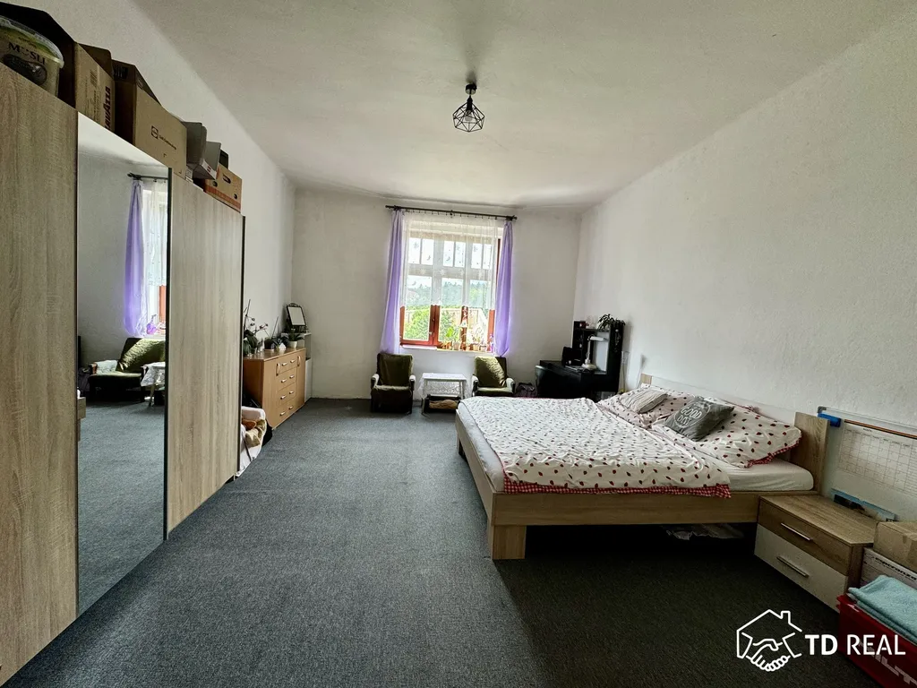 Dispozice: vstupní chodba se vstupy do pokoje o výměře 26m², kuchyně a koupelna se sprchovým koutem, toaleta je zvlášť.