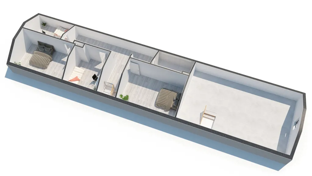 V patře jsou k dispozici 4 samostatné pokoje, prostorná chodba se vstupy do jednotlivých místností a koupelna se sprchovým koutem a toaletou. Velkým benefitem je také prostorná půda, která nabízí možnost vybudování dalších obytných místností dle vlastních představ.