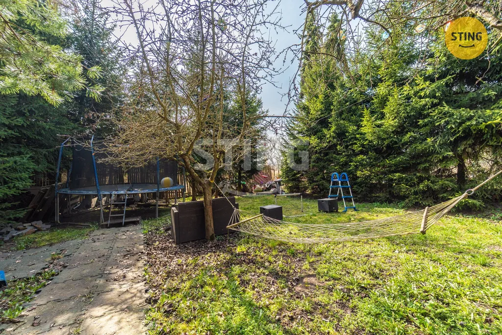 K domu náleží velkorysá zelená zahrada s dětským hřištěm, která nabízí dostatek soukromí.