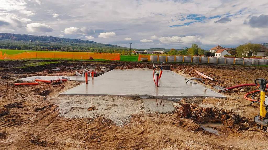 Součástí prodeje je pozemek, platné stavební povolení, kompletní projektová dokumentace, základová deska a kompletní inženýrské sítě. Dům je připraven k okamžité návazné výstavbě bez další administrativy.