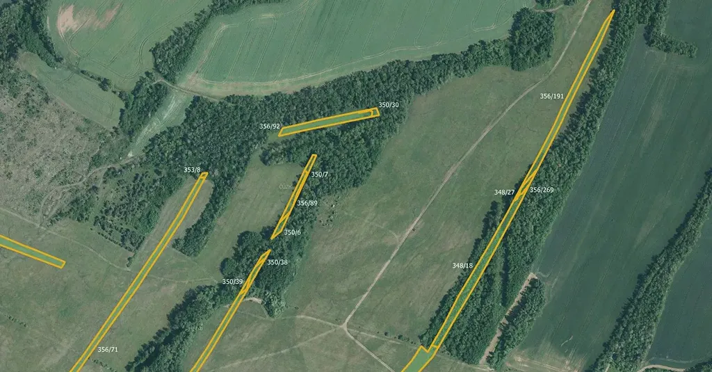 Předmětem prodeje je vlastnictví na parcelách 348/18, 348/27, 350/6, 350/7, 350/30, 350/38, 350/39, 353/8, 356/64, 356/71, 356/89, 356/92, 356/100, 356/133, 356/161, 356/172, 356/191, 356/202, 356/269, 376/24, 378/1, 383/45, 404/21, 404/33 a 413/26, zapsaných na LV č. 426, KÚ Hrubšice.