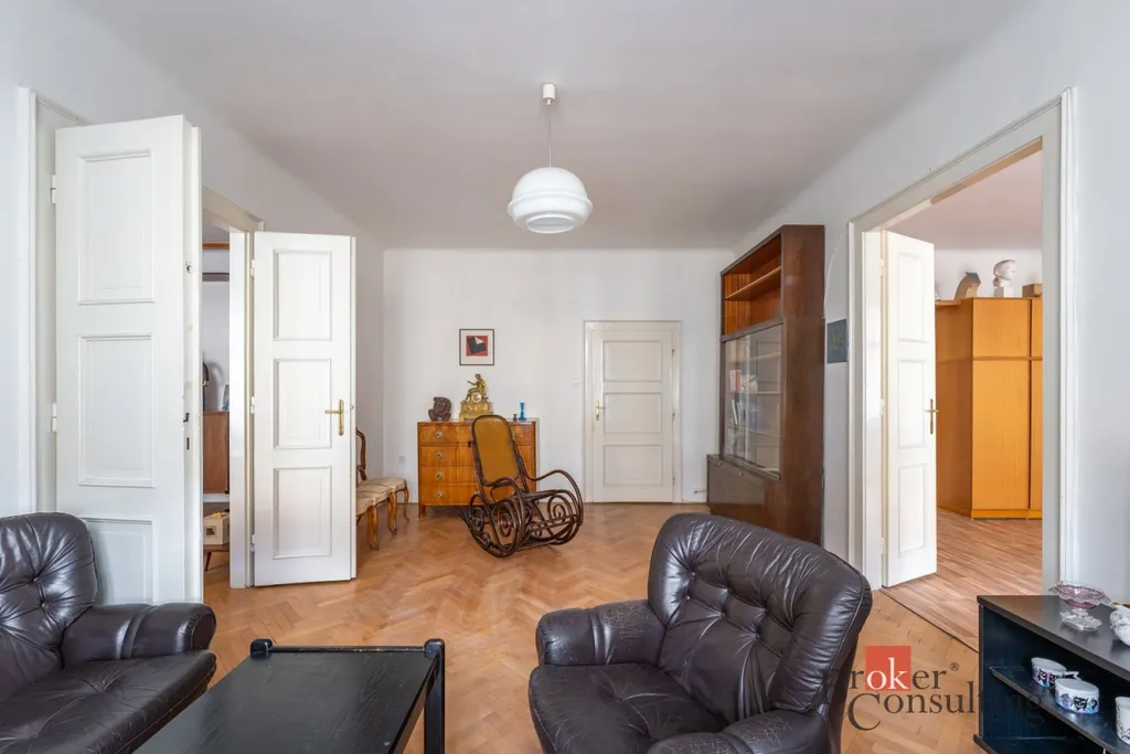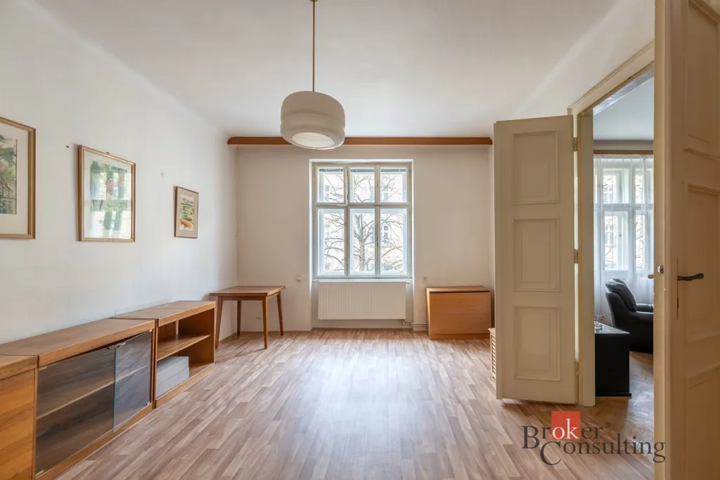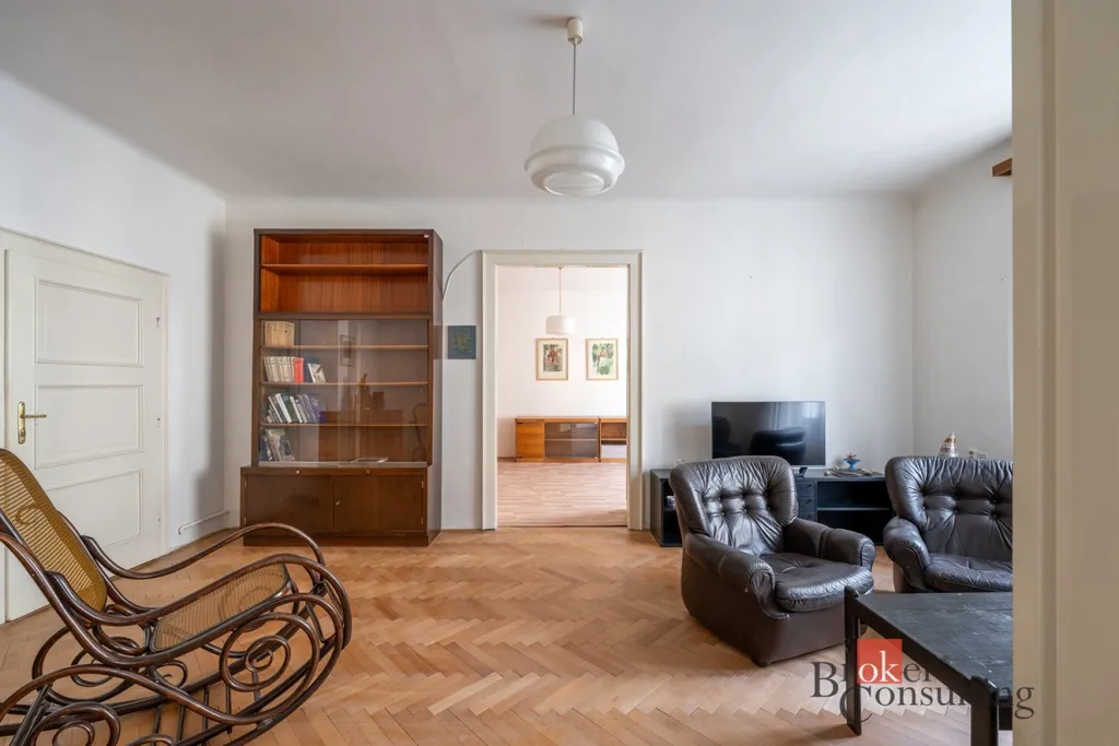Byt si zachoval svůj původní charakter – kazetová okna, krásné parkety a velkorysé 3 metrové stropy. Je udržovaný a ihned připravený k nastěhování.