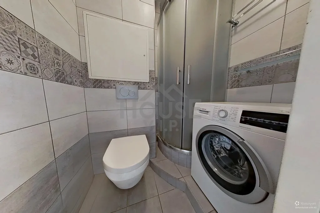 Ve spodním patře se nachází vstupní hala, samostatný pokoj, koupelna se sprchou a toaletou a komora. Horní patro nabízí předsíň, další komoru, koupelnu, samostatné WC, plně vybavenou kuchyni (Electrolux, Gorenje, Bosch), obývací pokoj a dva další pokoje. Každé patro má vlastní koupelnu i toaletu, což zajišťuje vysoký komfort i pro vícečlennou domácnost.