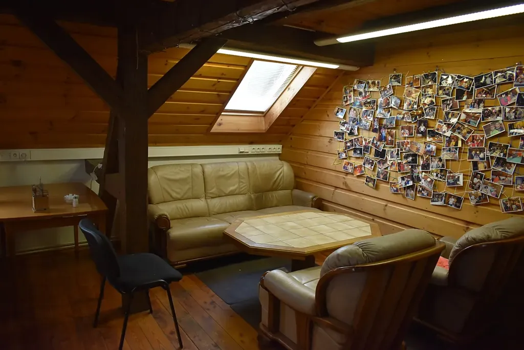 V patře se nachází stylová místnost s barem a kuchynkou. Zde se dají točit různé nápoje a připravovat různé dobroty. Je zde i mistnost pro ruzné hry a WC dámské a pánské. Součástí je i galerie s pěkným výhledem na oslavence.