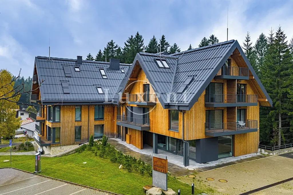 Nabízíme k prodeji kompletně vybavený apartmán 2+kk s balkonem, v luxusním horském projektu HARRACHOV PEAKS. Apartmán má užitnou plochu 60,80 m² a celková užitná plocha včetně balkonu je 69,90 m². Designově vybavený apartmán se nachází ve 3.NP a zahrnuje předsíň, ložnici s vestavěnou velkou šatní skříní, samostatnou toaletu, koupelnu se sprchovým koutem a prostorný obývací pokoj s kuchyňským koutem (23 m²), na který navazuje oddělená jídelna. Z obývacího pokoje i jídelny je vstup na balkon s příjemným posezením a fantastickým výhled na sjezdovku. K apartmánu náleží jedno garážové stání a sklepní kóje.