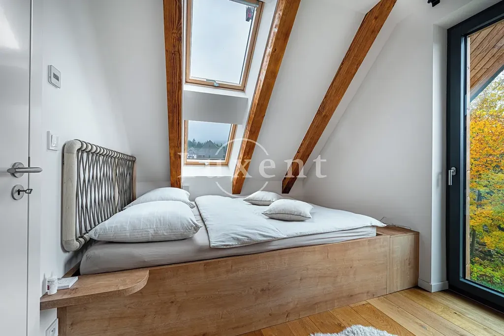 Obývací pokoj a ložnice jsou vybaveny klimatizací a předokenními žaluziemi na střešních oknech.
