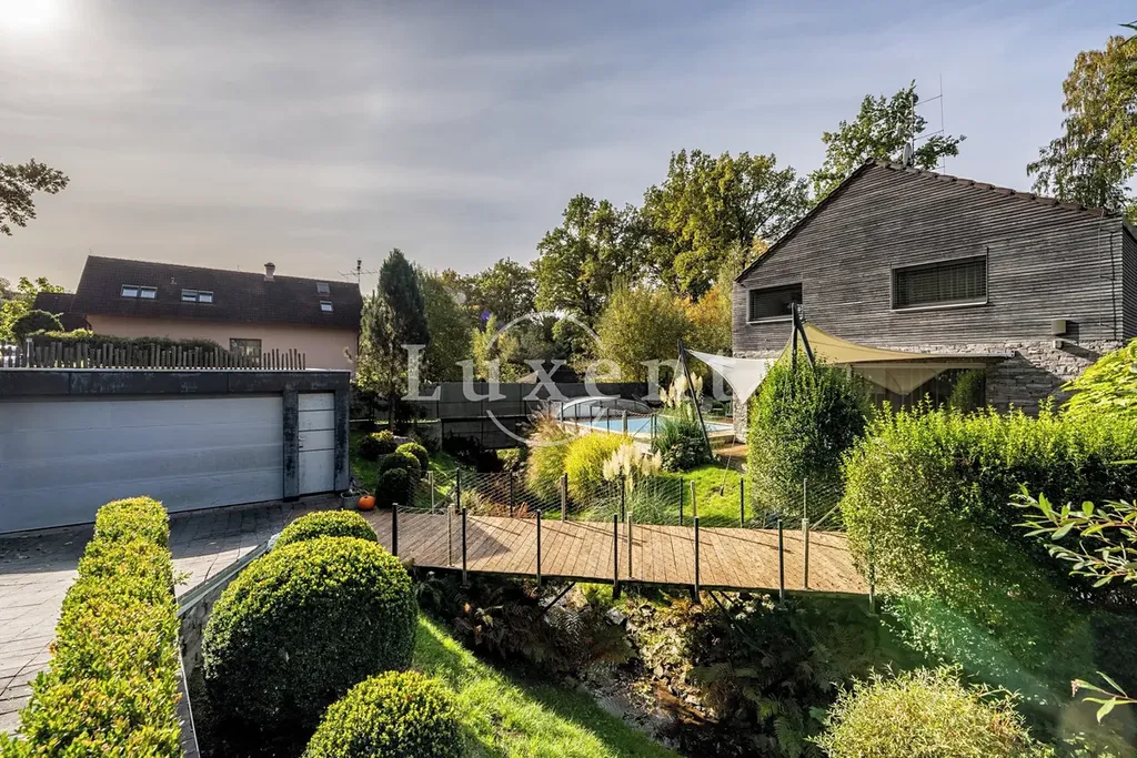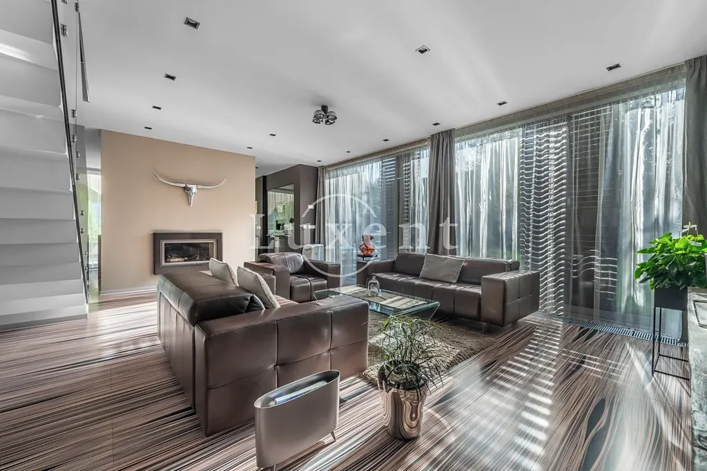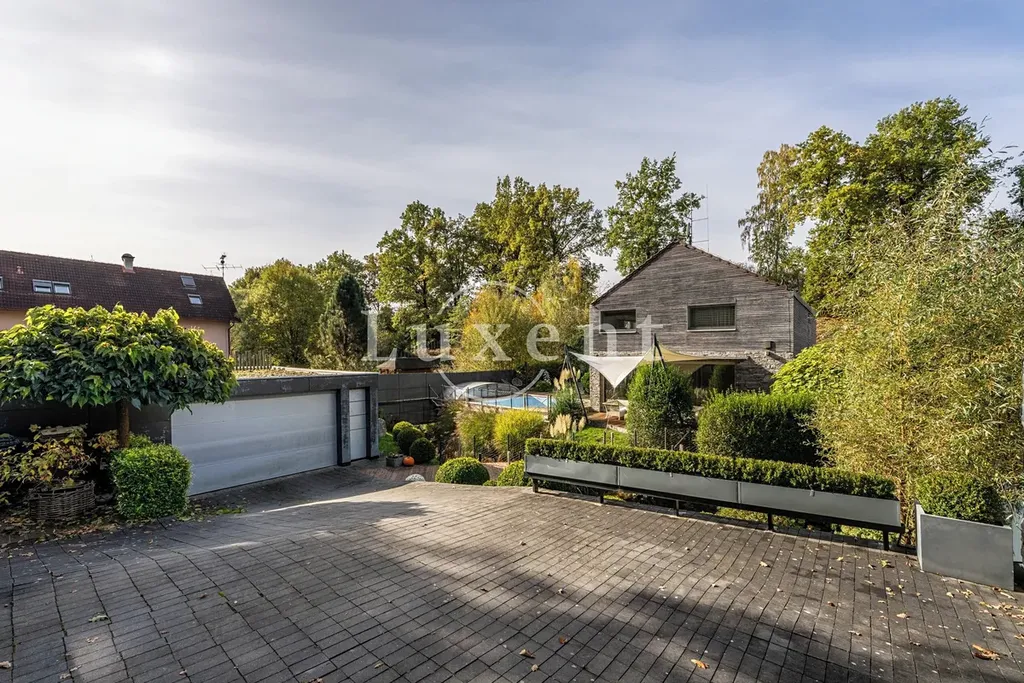 Nabízíme k prodeji dvojpodlažní rodinný dům 5+kk s celkovou užitnou plochou 185 m², který byl postaven v roce 2011. Dům představuje architektonicky nápaditě řešené moderní bydlení, které je citlivě zasazené do malebné okolní přírody Hrusic. Jihovýchodně orientovaná vila důmyslně pracuje se všemi živly: vodu představuje venkovní bazén a potůček na pozemku, rozlehlá zahrada poskytuje zemi, vzduch proudí velkými okny a dveřmi, oheň je zkrocen v krbu.