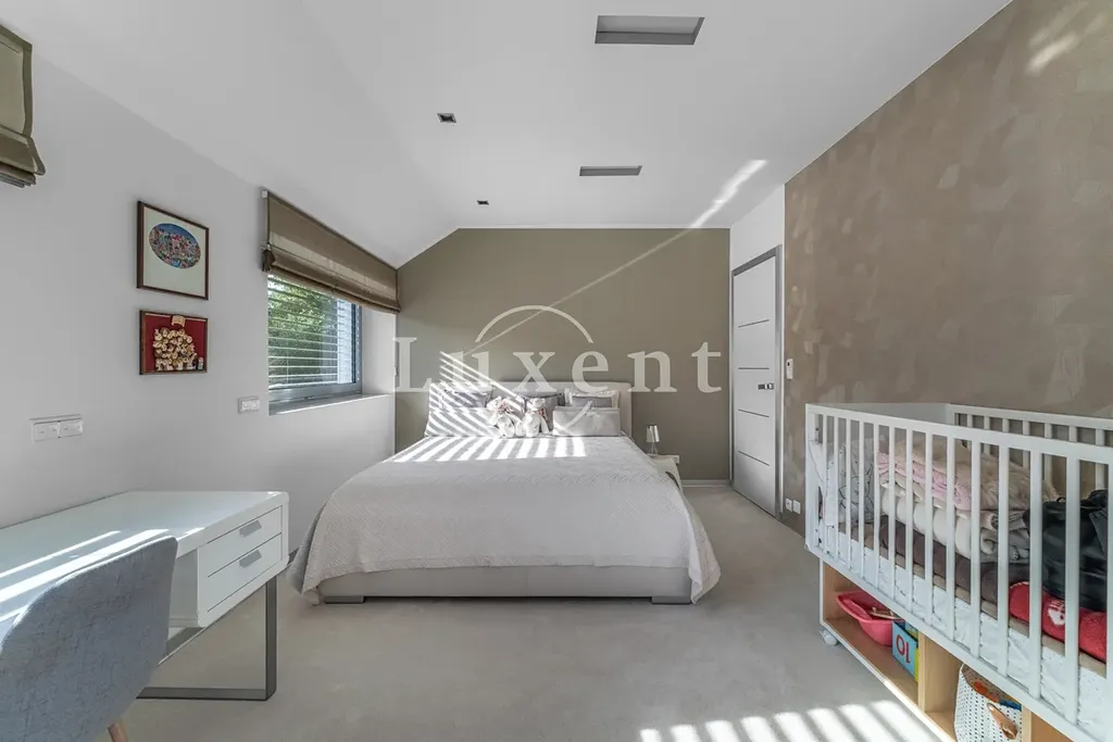 Součástí vybavení domu je elektronické zabezpečení Jablotron s napojením na centrální bezpečnostní systém, hliníková okna s bezpečnostními dvojskly, která jsou zastíněna předokenními žaluzemi nebo roletami. Bázen je vyhřívaný pomocí solárních panelů, které se také využívají k ohřevu vody v domě. Zahrada je má centrální zavlažovací systém. Dům je napojen na městský vodovod i kanalizaci. Energetická třída je velmi úsporná B.