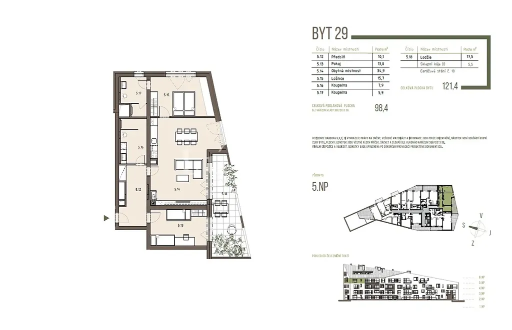 Nabízíme k prodeji apartmán v projektu Rezidence Svatá Barbora. Apartmán o dispozici 3+kk a podlahové ploše 98,4 m2 s lodžií 17,5 m2 se nachází v 5. NP novostavby s plánovanou kolaudací od 2Q 2027.
