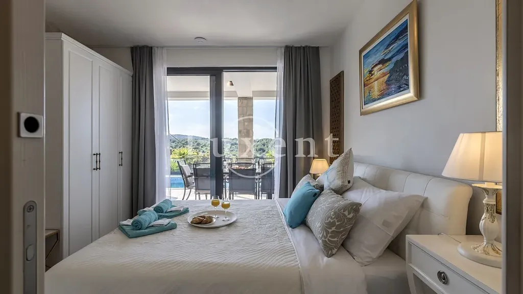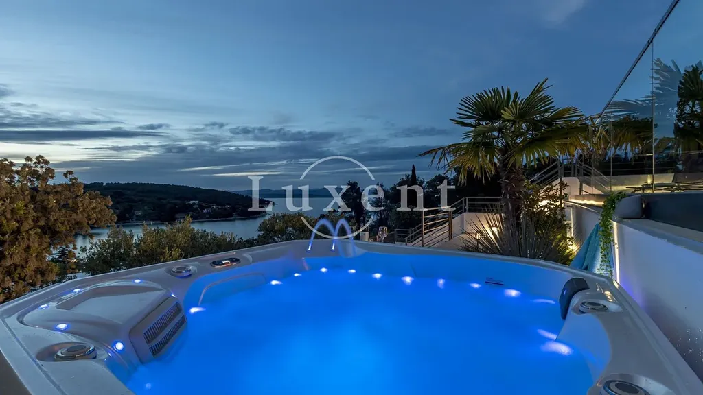 Venkovní prostor je promyšleně upravený pro relaxaci i zábavu – vyhřívaný bazén s výhledem na moře, vířivka, krytá venkovní kuchyně s jídelním koutem, gril, prostor pro opalování, stolní tenis i dětské hřiště. Vila se prodává kompletně zařízená a připravená k okamžitému užívání. Je ideální volbou pro ty, kteří hledají moderní prázdninový dům, soukromé útočiště, nebo stabilní investici do turistického pronájmu.