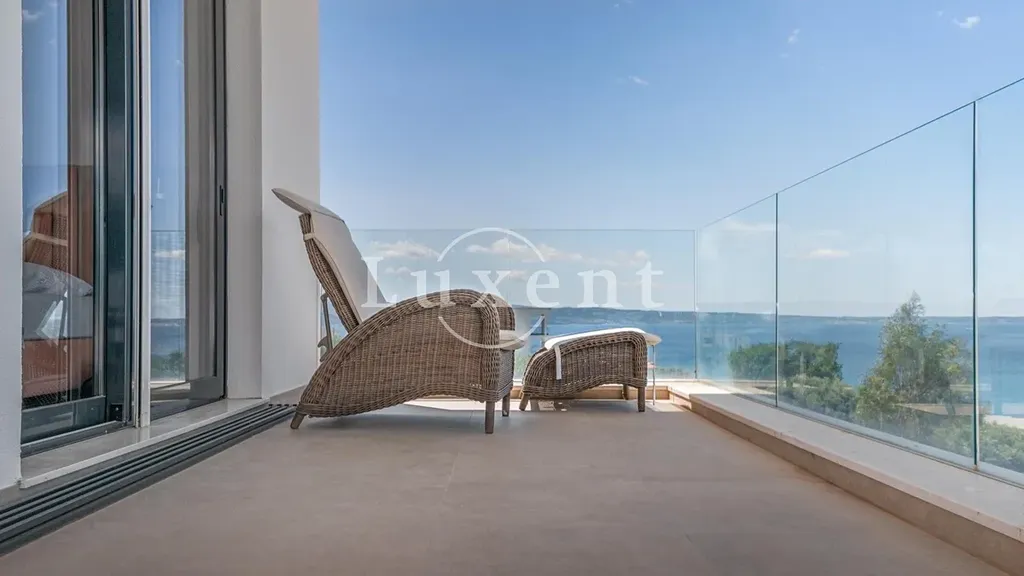 V horním patře se nachází tři komfortní ložnice, z nichž každá má vlastní koupelnu a přímý vstup na balkon s panoramatickým výhledem na moře. Vnitřní schodiště propojuje všechna podlaží a zajišťuje plynulý pohyb po celé vile.