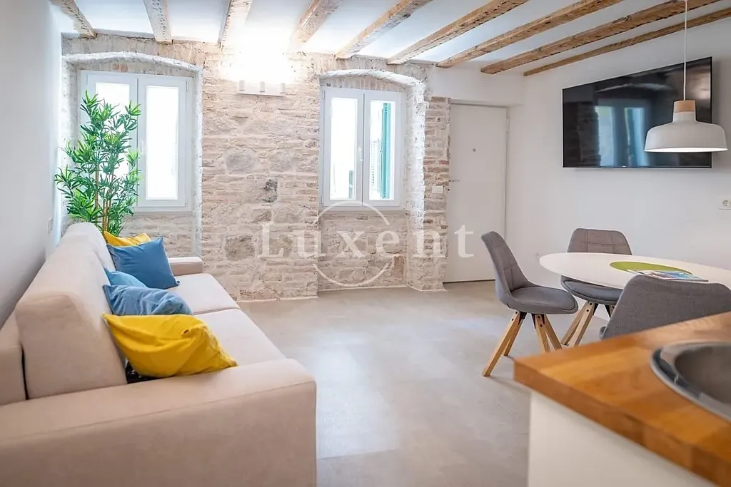 Nabízíme k prodeji kompletně zrekonstruované a stylově zařízené apartmány ve výjimečné lokalitě v centru města Split, jen pár kroků od slavného Diokleciánova paláce a nábřeží. Nemovitost se nachází v prvním patře obytné budovy a disponuje celkovou obytnou plochou 77 m2.