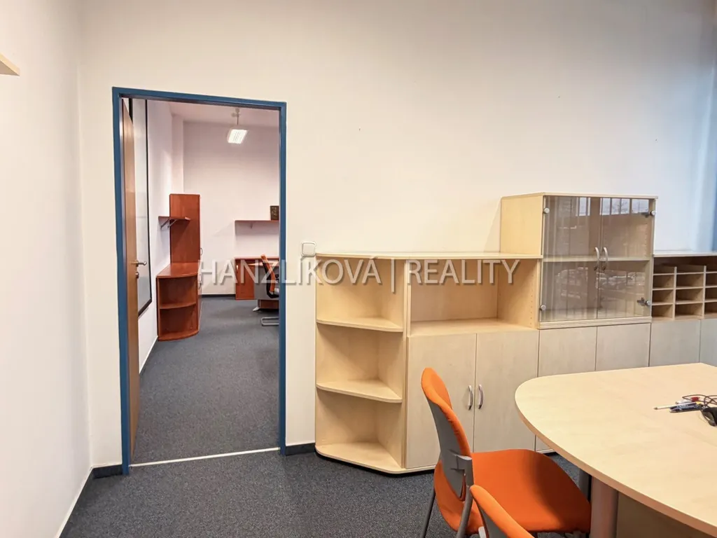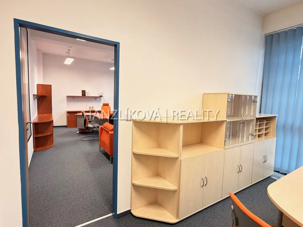 Prostory se nacházejí v 1. patře a tvoří je dvě průchozí kanceláře o celkové výměře cca 52 m². Kanceláře jsou plně vybavené, ve velmi dobrém stavu a připravené k okamžitému užívání bez nutnosti dalších investic.