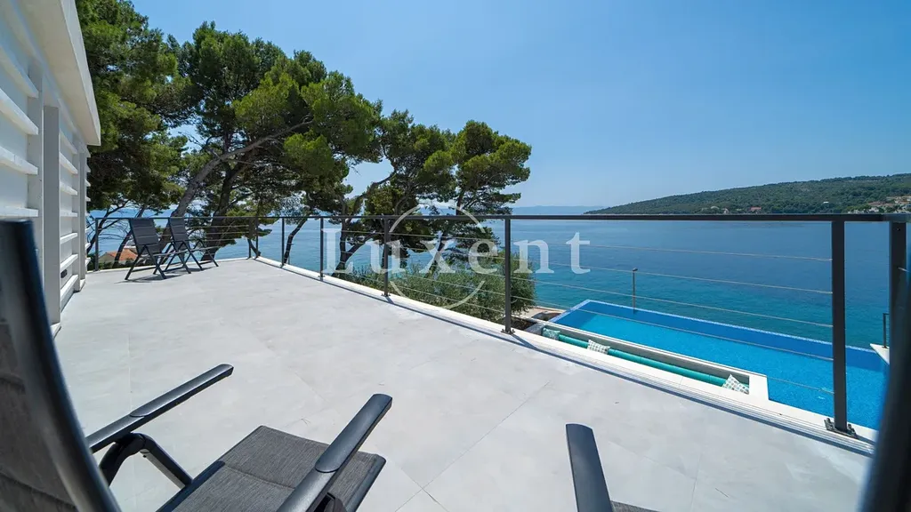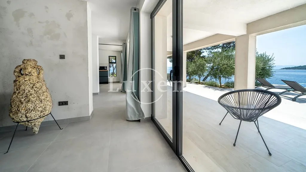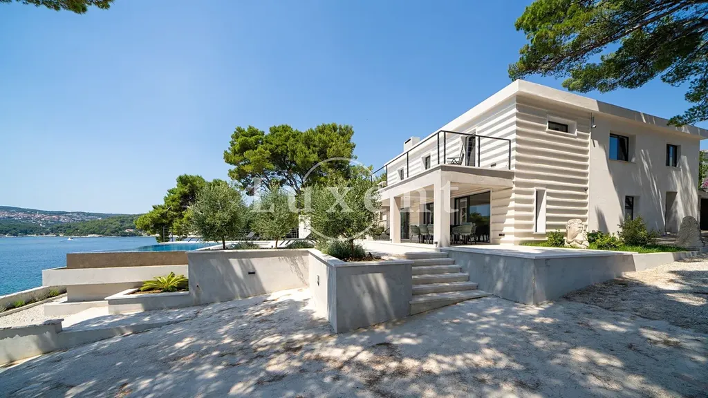 K prodeji nabízíme nově postavenou moderní luxusní vilu na ostrově Brač, která se nachází na výjimečném místě v první řadě u moře. Tato exkluzivní nemovitost je jen pár kroků od tyrkysově čistého Jaderského moře a oblázkové pláže, a nabízí ničím nerušený výhled na moře a okolní krajinu. Vila je situována na mírně vyvýšeném, dominantním pozemku o rozloze 1 100 m2, což zajišťuje naprosté soukromí a jedinečnou atmosféru přímořského luxusu.