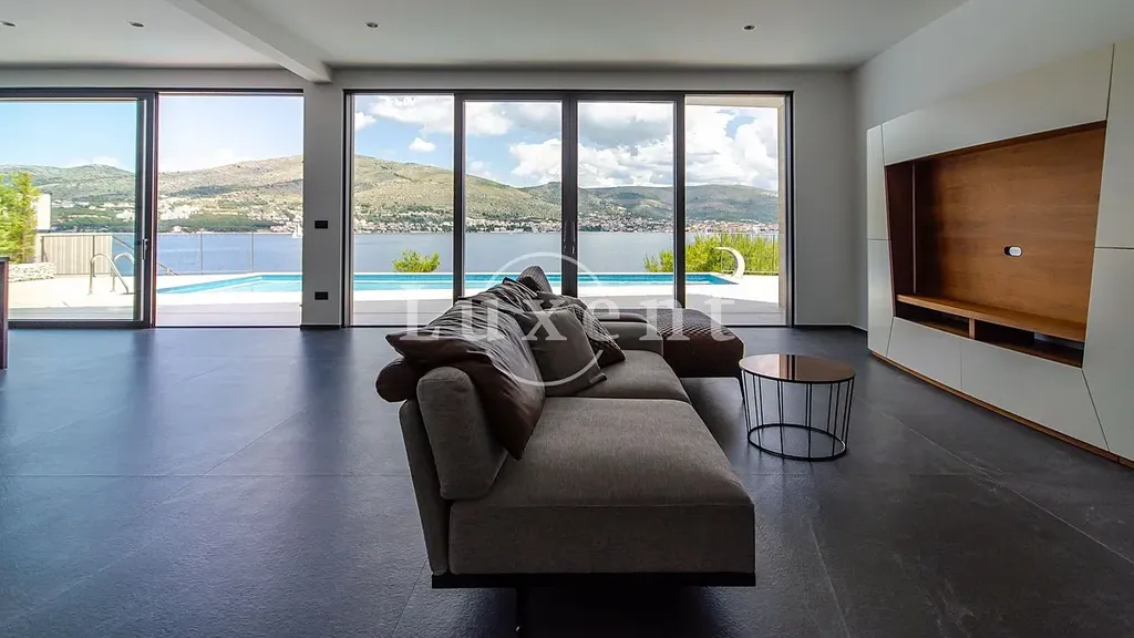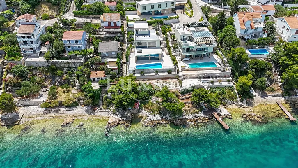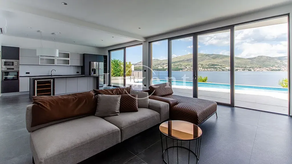 Nabízíme k prodeji nově postavenou moderní vilu v první linii u moře na vyhledávaném ostrově Čiovo, který je spojen mostem s pevninou a jen několik minut jízdy od historického centra Trogiru, zapsaného na seznamu UNESCO. Lokalita je známá svou klidnou atmosférou, krásnými plážemi, azurově čistým mořem a výbornou dostupností díky blízkosti splitského letiště, což z ní činí ideální místo jak pro rekreační bydlení, tak investici.