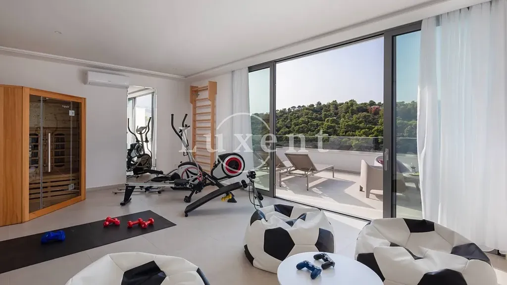 Celý interiér je laděn v duchu současného designu a vila se prodává kompletně zařízená, včetně kvalitního nábytku a moderních spotřebičů. Součástí prodeje jsou čtyři vyhrazená parkovací místa. Pouhých 10 metrů od moře dělí tuto nemovitost od Jadranu, což vytváří atmosféru dokonalého prázdninového útočiště. Vzdálenost od letiště Brač činí pouhých 11 kilometrů, což zajišťuje pohodlnou dostupnost.