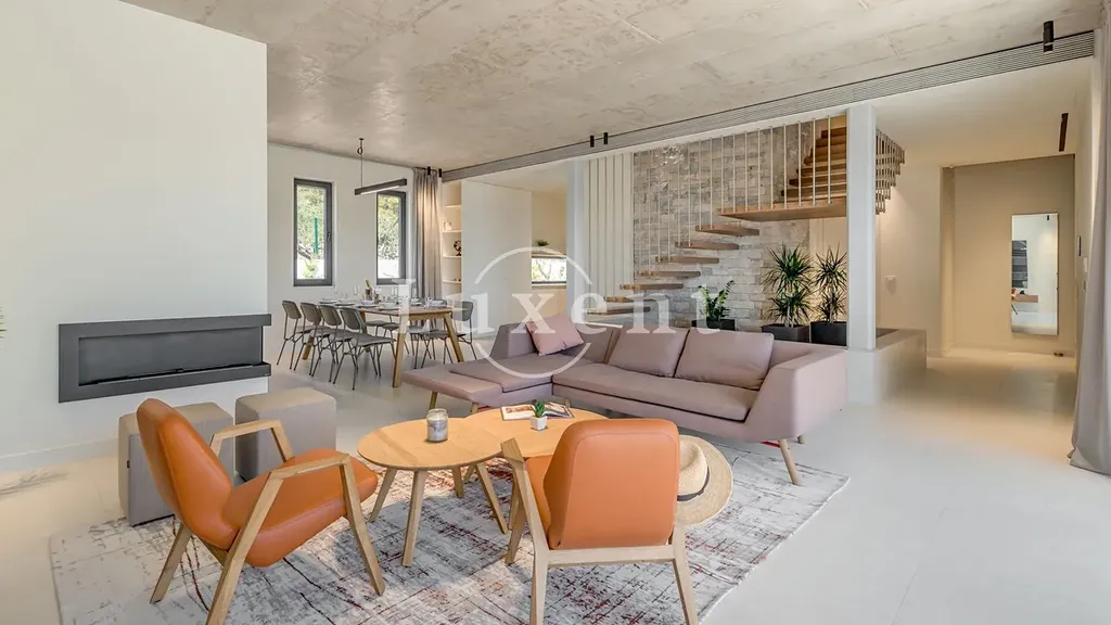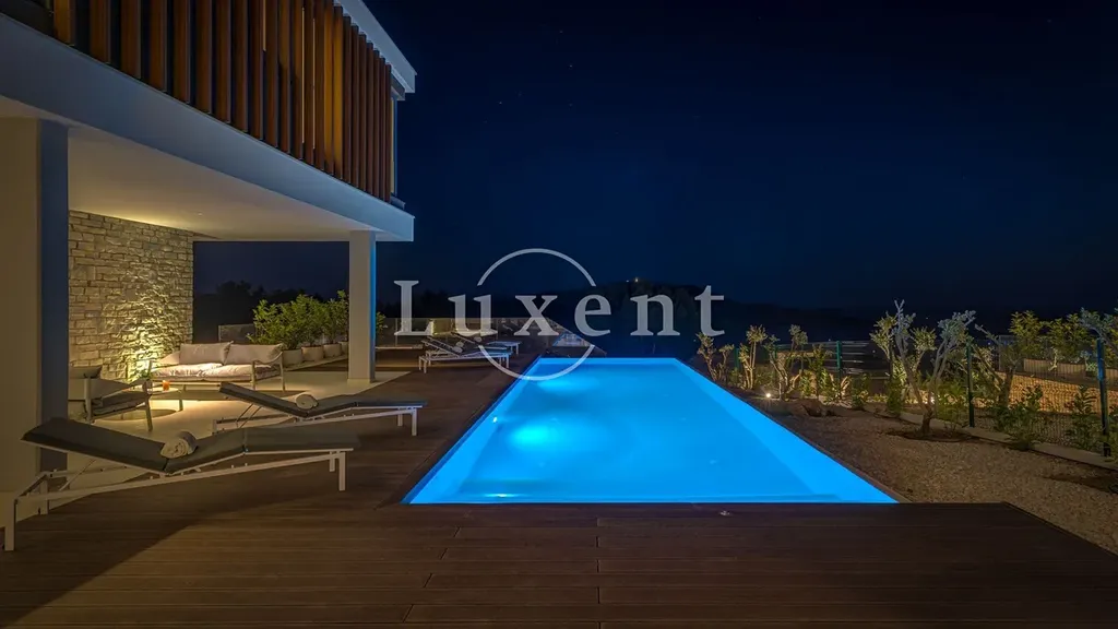 Nabízíme k prodeji jedinečnou moderní vilu s působivým výhledem na moře a okolní ostrovy, situovanou v prestižní lokalitě nedaleko města Primošten. Tato architektonicky výrazná nemovitost se rozkládá na pozemku o velikosti 850 m2 a nabízí obytnou plochu 300 m2, rozdělenou do tří podlaží – suterénu, přízemí a prvního patra.