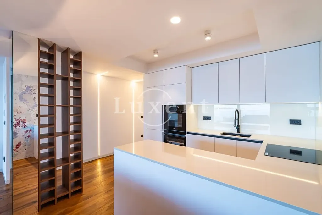 Apartmán je vybaven vysokým standardem, včetně chytré domácnosti. V každé místnosti je podlahové topení, klimatizace a elektricky ovládané rolety. K apartmánu náleží tři venkovní parkovací stání pod přístřeškem.