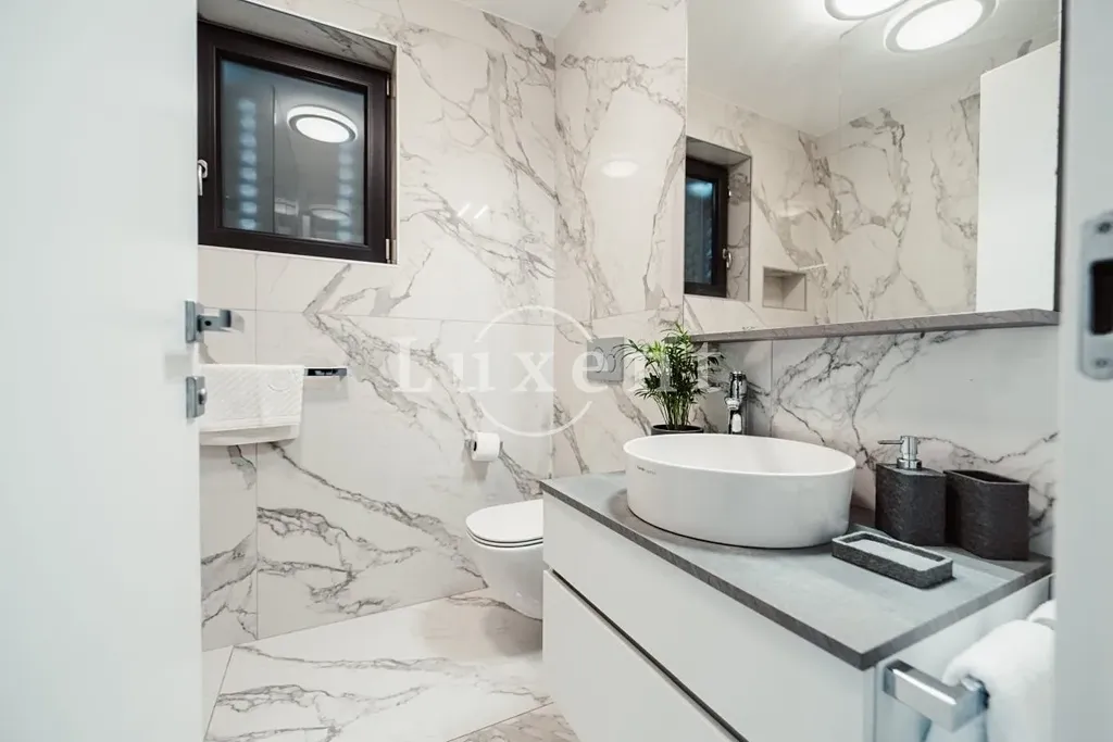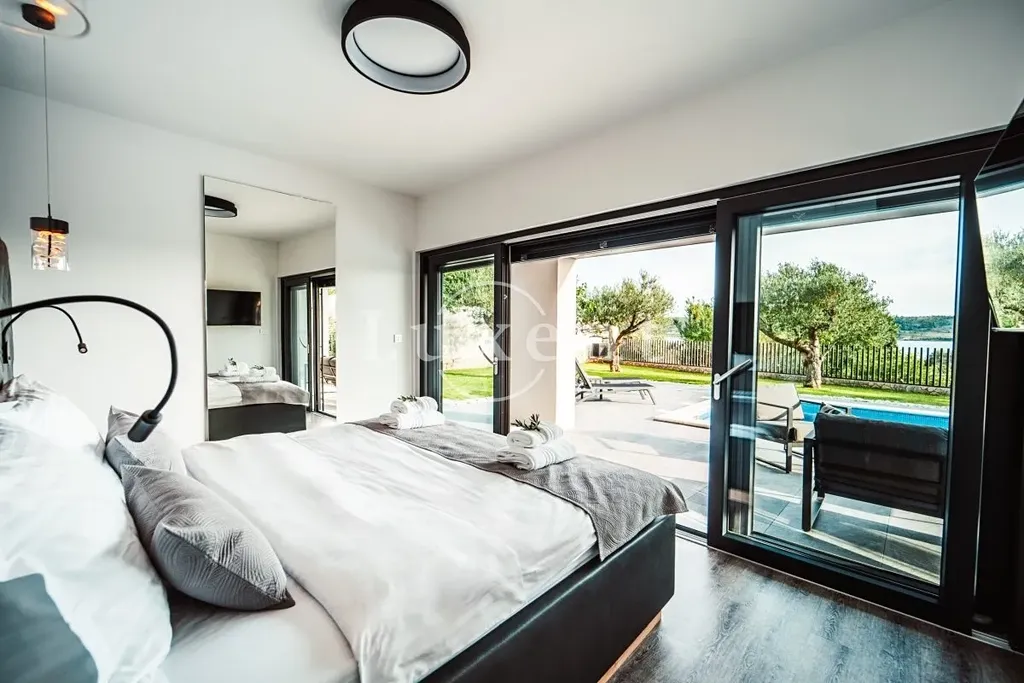Nabízíme k prodeji nově postavenou luxusní vilu s vyhřívaným bazénem v oblasti Zadar, pobřeží Dalmácie. Tato moderní vila je navržena jako dvě zcela samostatné jednotky, které dohromady poskytují flexibilní a komfortní obytný prostor. Vila je plně vybavena moderním nábytkem a vyznačuje se vysokým standardem provedení s luxusními materiály a detaily.