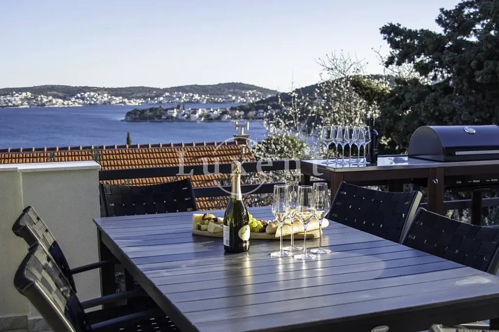Tento plně zařízený apartmán se nachází v prostředním patře klidného třípodlažního domu a nabízí celkovou využitelnou plochu 74 m² (vnitřní prostory 57 m² + terasa). Dispozice je velmi funkční – vstupní prostor, prostorný obývací pokoj s kuchyňským a jídelním koutem, dvě ložnice a koupelna. Z obývacího pokoje i z terasy se otevírá nádherný otevřený výhled na zátoku Rogoznica.