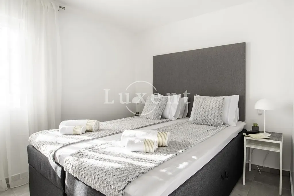 Nabízíme k prodeji moderní dvoupokojový apartmán s krásným výhledem na moře v atraktivní lokalitě chorvatské Rogoznice, pouhých 150 metrů od pobřeží i centra městečka.