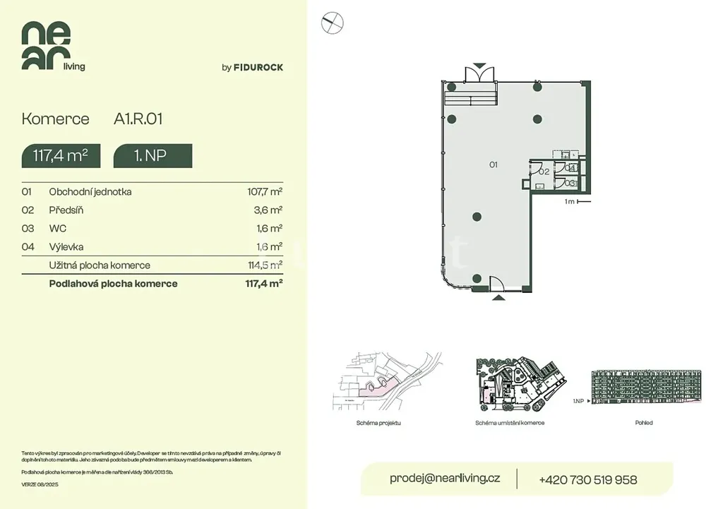 Nabízíme k prodeji komerční jednotku o výměře 117,4 m2 v novostavbě projektu NEAR living na pražské Palmovce. Nebytový prostor je situován v 1. NP novostavby s přímým vstupem z ulice a prodává se ve stavu Shell & Core, což umožní dokončit a kolaudovat prostory zcela podle vlastních požadavků.