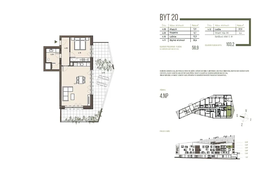 Nabízíme k prodeji apartmán v projektu Rezidence Svatá Barbora. Apartmán o dispozici 2+kk a podlahové ploše 58,9 m2 s lodžií 37,9 m2 se nachází ve 4. NP novostavby s plánovanou kolaudací od 2Q 2027.