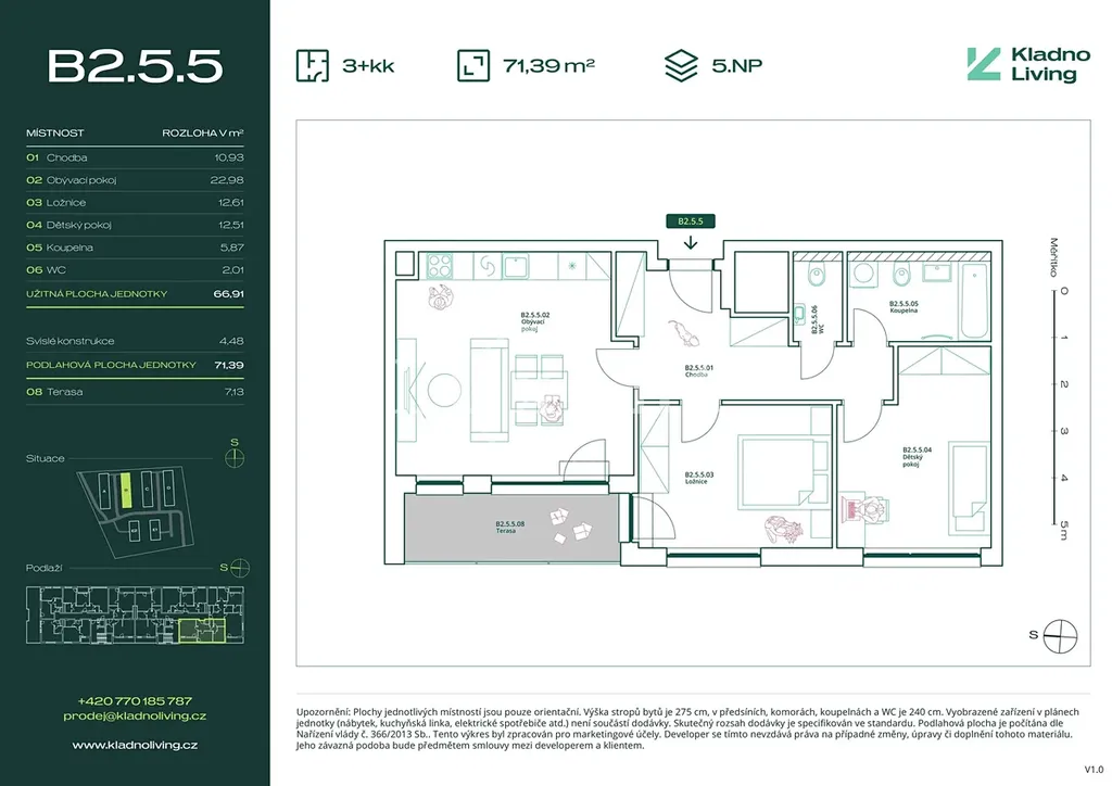 Nabízíme ke koupi moderní byt 3+kk o podlahové ploše 71,4 m² s terasou 7,1 m² v rezidenčním projektu Kladno Living, který vzniká v jedné z nejatraktivnějších lokalit města Kladno – Kročehlavy. Tento nový developerský projekt představuje jedinečnou příležitost pro ty, kteří hledají nové byty v Kladně nebo investici do nemovitosti s vysokým potenciálem zhodnocení.