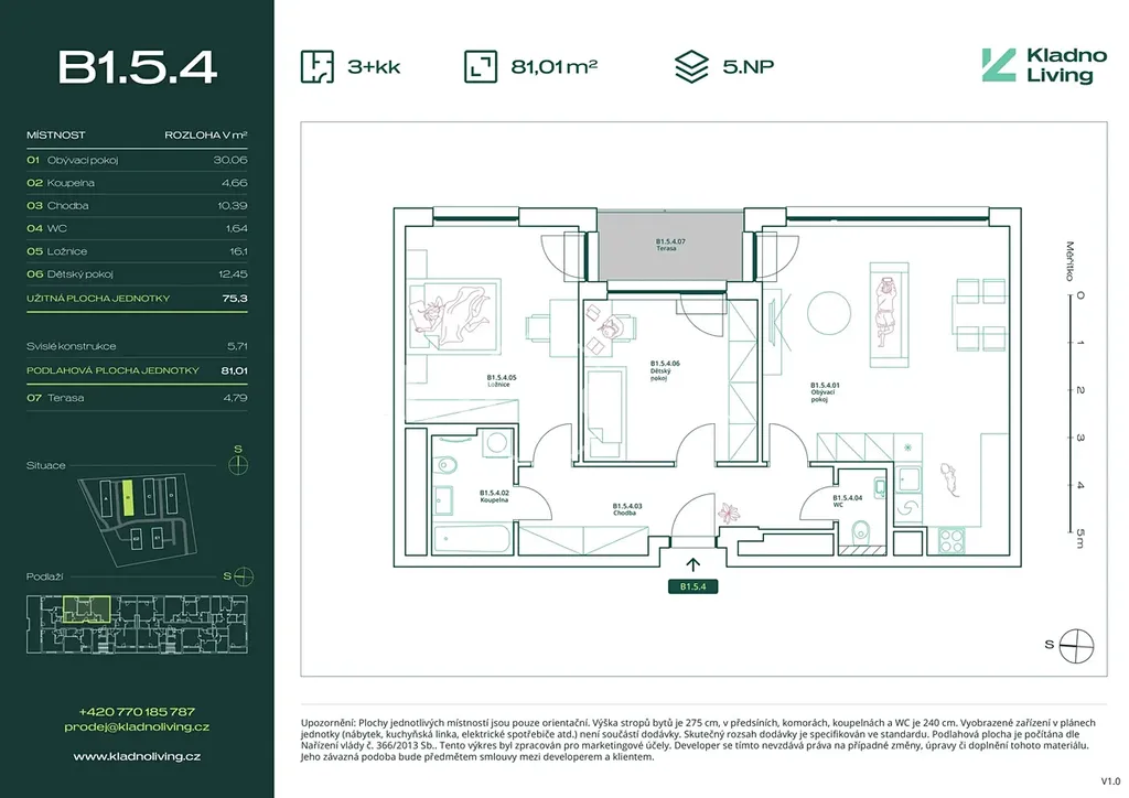 Nabízíme ke koupi moderní byt 3+kk o podlahové ploše 81 m² s terasou 4,8 m² v rezidenčním projektu Kladno Living, který vzniká v jedné z nejatraktivnějších lokalit města Kladno – Kročehlavy. Tento nový developerský projekt představuje jedinečnou příležitost pro ty, kteří hledají nové byty v Kladně nebo investici do nemovitosti s vysokým potenciálem zhodnocení.